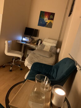 Během terapie můžete pohodlně sedět nebo ležet na polohovatelném lehátku. Po celou dobu terapie budete mít dostatek pohodlí. Zajistíme vám dostatek tekutin, abyste mohli dodržovat pitný režim během terapie.